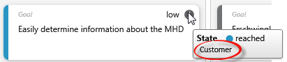 User Use the dropdown menu to select the user type to be displayed. You are only offered a selection if employees can be assigned to the selected element (for example, requirement, test case, and so on). If initials were entered for the staff member, then these are displayed in the view. Otherwise, an user abbreviation is generated from the name and displayed.