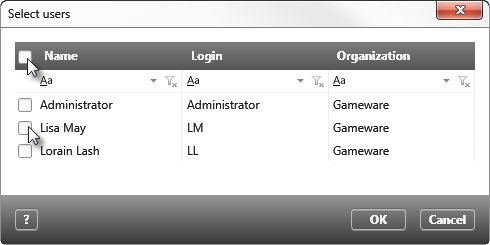 Individual employees can be selected by marking the checkbox before the name of the desired employee.