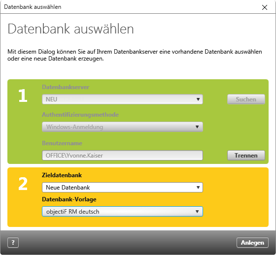 Produkte » objectiF RM » Service-Manager starten » Der Dialog „Datenbank auswählen“