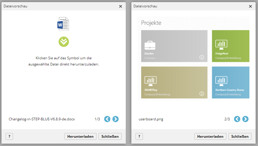 Der Dialog zeigt, abhängig vom Dateityp, eine Vorschau oder bietet direkt den Download an.