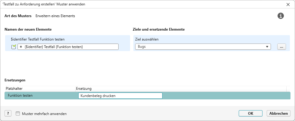 - Verwenden Sie im Namen einen Platzhalter, der später über das Muster ersetzt werden soll.