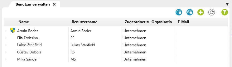 In dieser Sicht sehen Sie alle Benutzer, die innerhalb der Hauptorganisation angelegt oder importiert wurden.