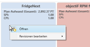 Über das Kontextmenü der einzelnen Projekte können Sie Revisionen anlegen oder das Projekt direkt öffnen.