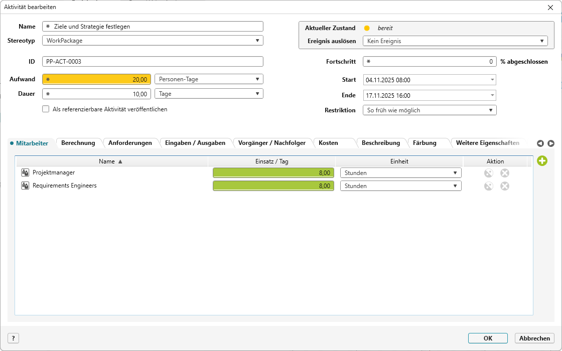 Produkte » objectiF RPM » Projektmanagement » Der Dialog „Aktivität anlegen/bearbeiten“
